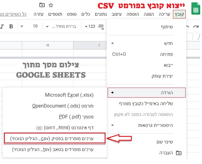 לחץ כאן לקבלת האפליקציה בוואטסאפ . לאחר ייצוא הקבצים עם האפליקציה מומלץ לשלוח לעצמכם באמצעות הוואטסאפ ובאמצעות וואטסאפ ווב להוריד את הקובץ אל המחשב, כששולחים באימייל זה לא תמיד עובד. לאחר שהורדתם את הקובץ שילחו אותו בגימייל לעצמכם ופתחו באמצעות גוגל שיטס , סדרו את הקובץ, מחקו אנשי קשר לא רלוונטים וסדרו את הרשימה שלכם בהתאם לצרכים כאשר ראשון בטבלה מצד שמאל אלו השמות ושני בטבלה – מספרי הטלפון, לאחר מכן כל שאר המידע אודות כל רשומה. יפה סיימתם לסדר את הרשימה עכשיוייצאו את הקובץ בפורמט הנ"ל